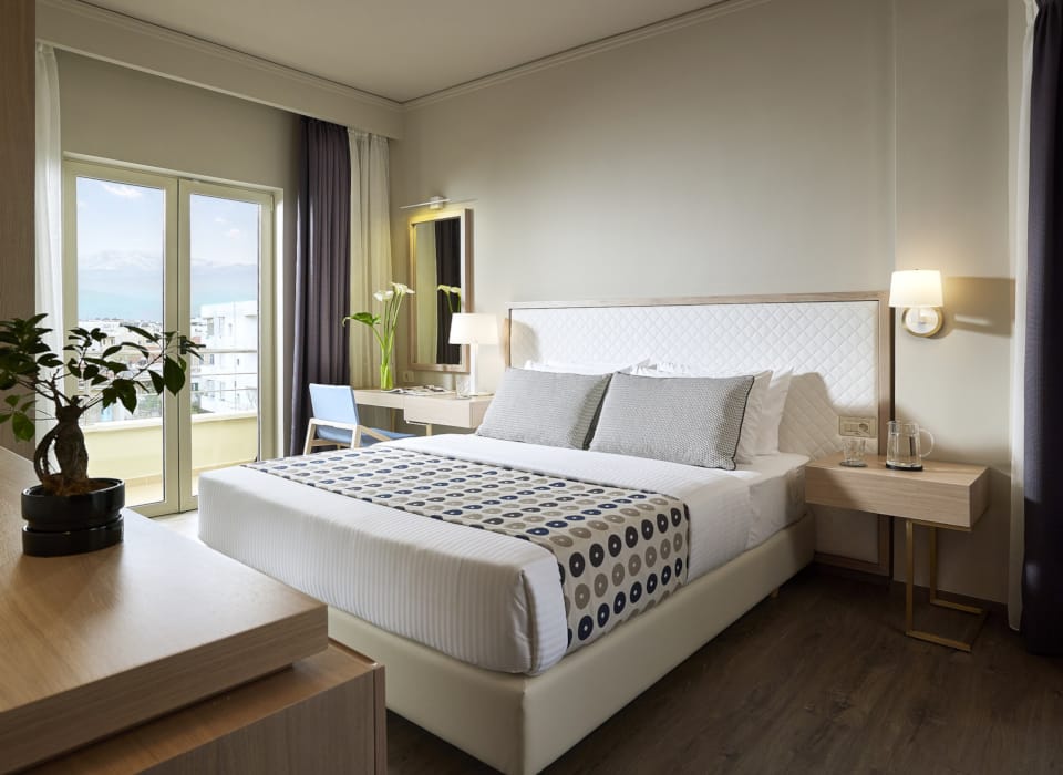 All rooms have individually controlled air conditioning/ heating, flat screen TV, Wi-Fi access, telephone, safe box, mini-fridge, bathroom with bathtub (toiletries provided), hairdryer, shaving socket and furnished balcony. Buffet breakfast is included.